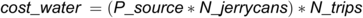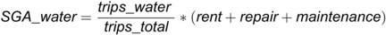 Boda boda operating costs, or SG&A, for transporting water are calculated using the following equation: